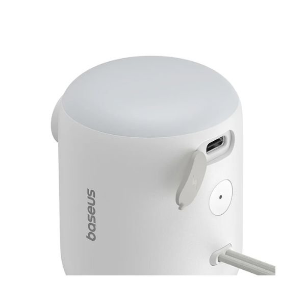 Adding to its utility, the Baseus PocketGo Portable Air Pump is equipped with an emergency light feature, offering three different lighting modes. This makes it a multi-functional tool for outdoor scenarios, providing illumination in low-light conditions or emergencies during camping trips. The durable ABS+PC material construction ensures the pump is robust enough to withstand outdoor adventures, while its remarkably lightweight design (about 130g) and included lanyard allow for easy portability – you can even attach it to your backpack for quick access.