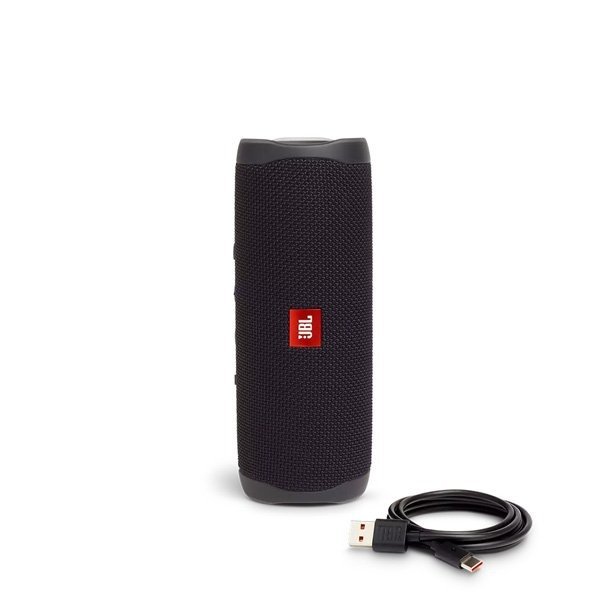 Take your tunes on the go with the powerful JBL Flip 5. Our lightweight Bluetooth speaker goes anywhere. Bad weather? Not to worry. With its waterproof design, you can rock out to our signature sound rain or shine. Enjoy up to 12 hours of play time for your favorite music. Stand it vertical or horizontal and be bold with your choice of 11 vibrant colors.