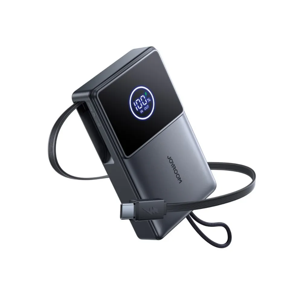 JOYROOM JR-PR1 10000mAh 22.5W Super Fast Charging Power Bank – Built-in Retractable Type-C Cable, LED Display, Universal Compatibility & Safety Certified at GearBaba