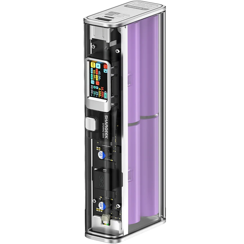 • See-Through Power Bank: Shargeek STORM2 Slim 100w power bank continues the transparent design by displaying itself from the inside out. The see-through design portable battery reveals its sophisticated internal structure including equipped battery and circuit layout, showing the beauty of technology.
